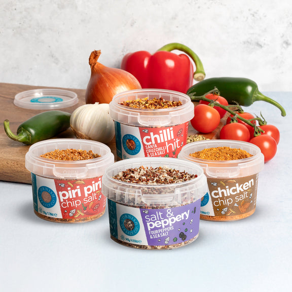 Craving your go-to takeaway? We’ve bundled those bold, crave-worthy flavours and brought them home in 4 Cornish Sea Salt pots. Our Fakeaway at Home Bundle is packed with punchy seasonings that bring your favourite dishes to life, from saucy stir-fries and sizzling wings to golden chips, juicy kebabs and vibrant oriental dishes.