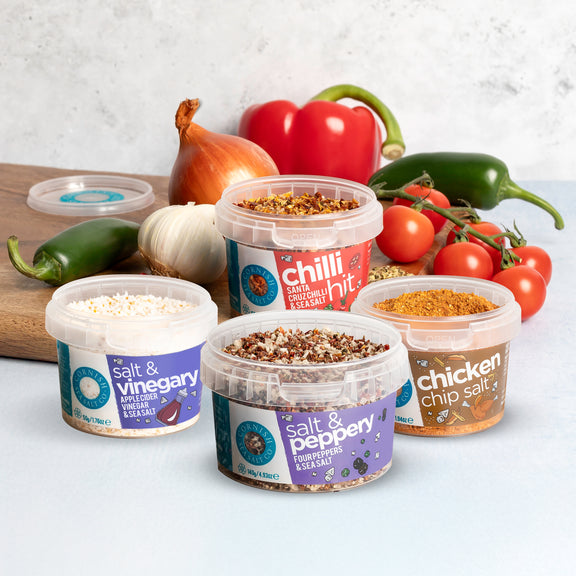 Craving your go-to takeaway? We’ve bundled those bold, crave-worthy flavours and brought them home in 4 Cornish Sea Salt pots. Our Fakeaway at Home Bundle is packed with punchy seasonings that bring your favourite dishes to life, from saucy stir-fries and sizzling wings to golden chips, juicy kebabs and zingy fish and chips.
