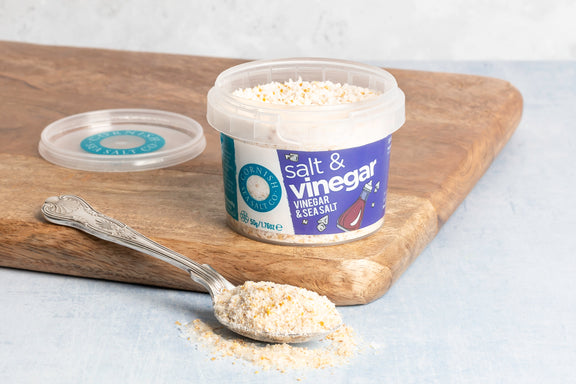 You think Salt, you think Vinegar. We've recreated the classic seaside combination in a pinch by infusing our Sea Salt Flakes with vinegar, ensuring every bite is perfect. We often dream about that salty, tangy goodness, that's why we created our Salt & Vinegar blend, so you can kick those cravings from the comfort of your very own home!